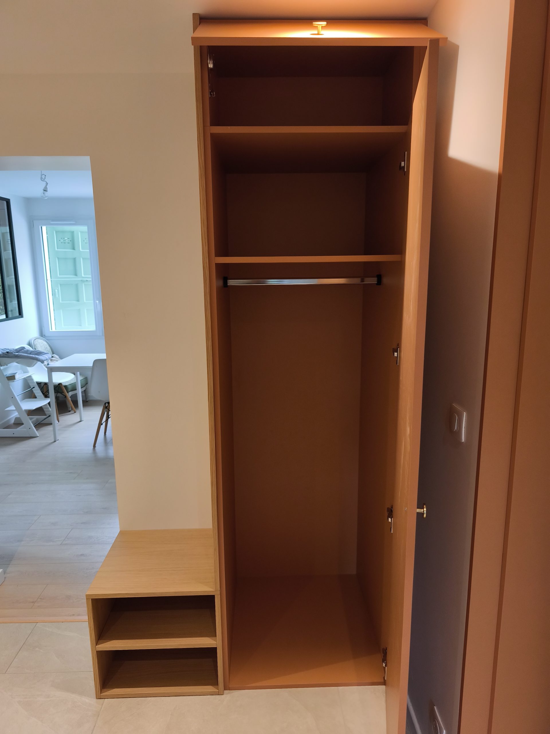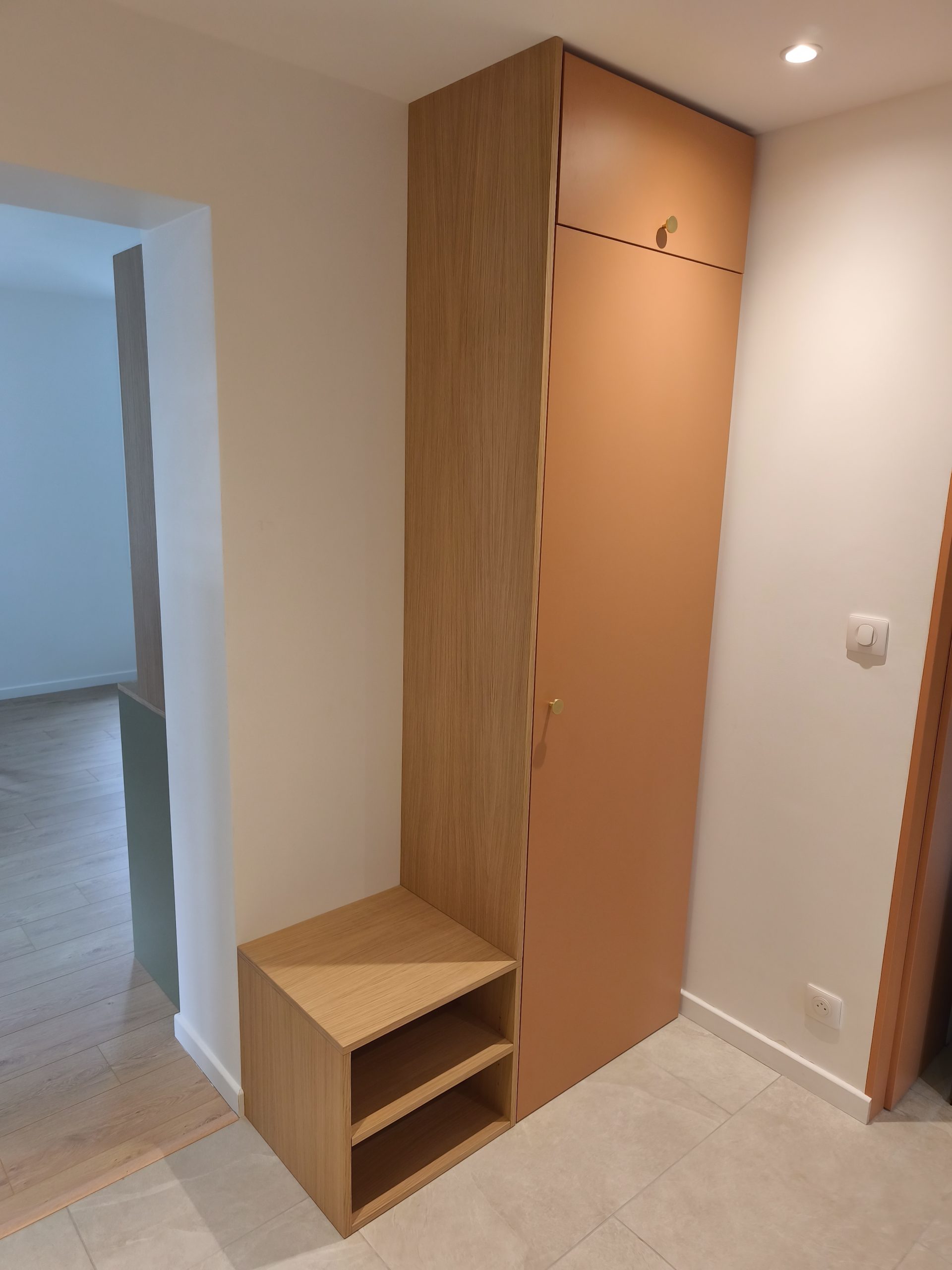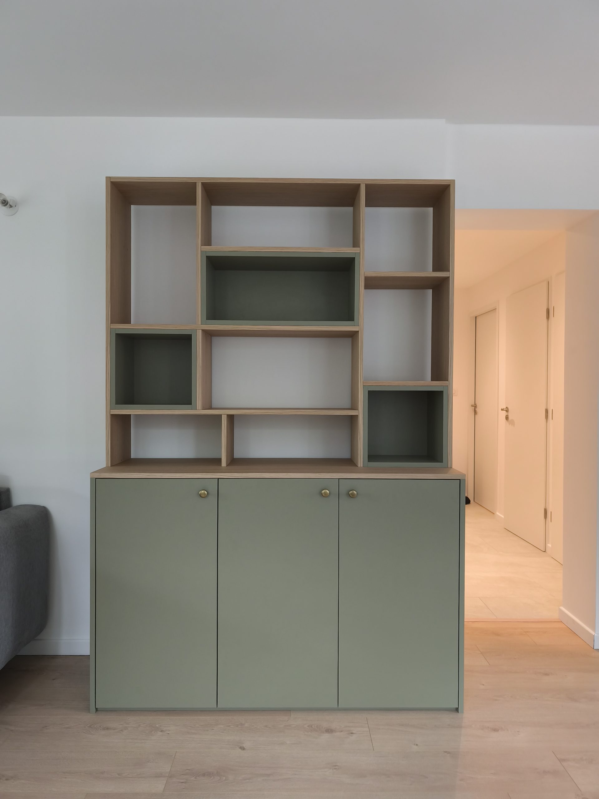 meuble de rangement et bibliothèque en chêne et mélaminé